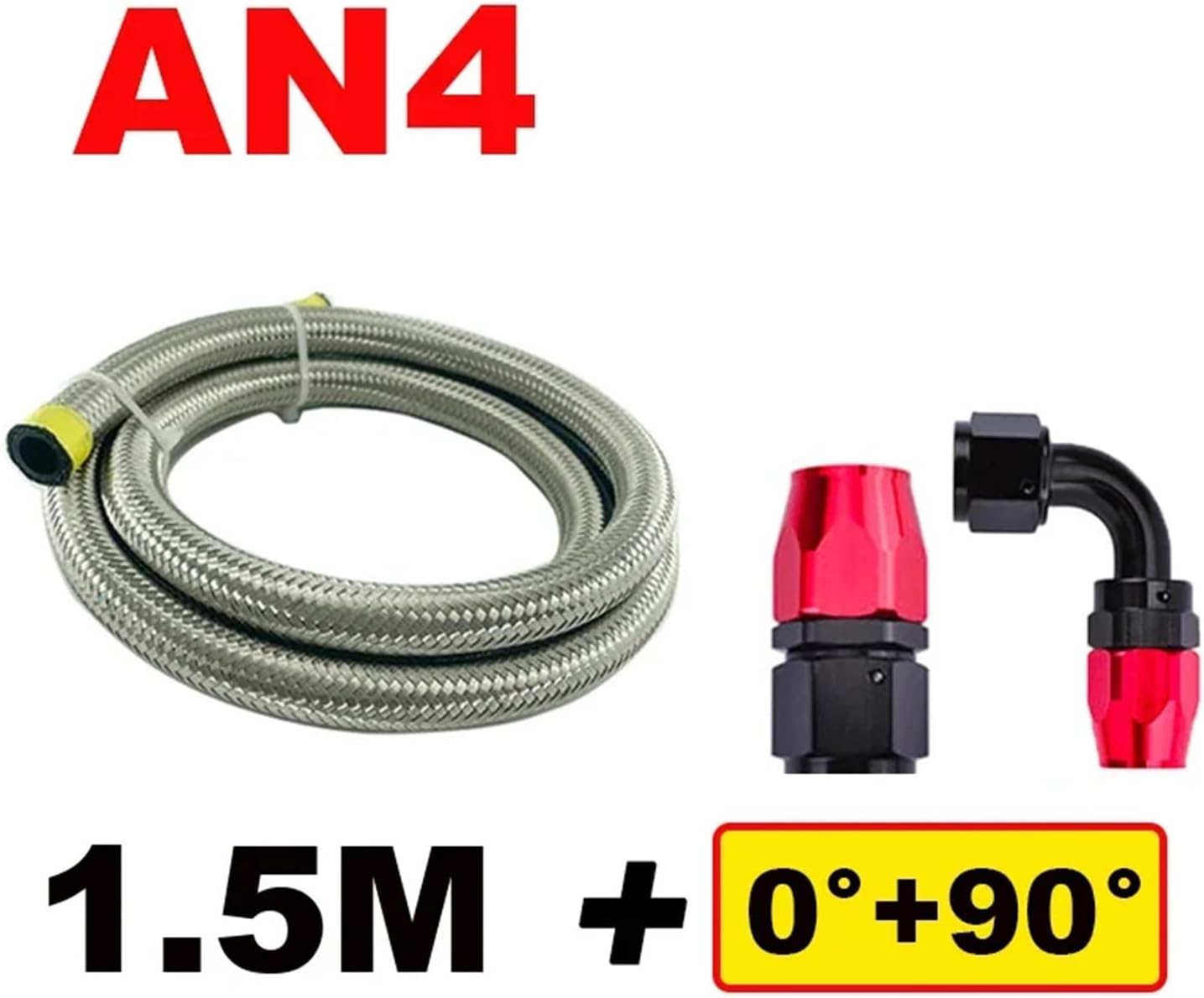 1.5M AN4 Fuel Hose Fitting Oil Line Pipe Tube Nylon Stainless Steel Braided CPE Rubber With 0 45 90 180 Degree Swivel Hose EndsProduct Name: Fuel Hose Oil Gas LineType A:Outside Material: Nylon + Stainless Steel WiresInner Hose Material: CPE Synthetic RubberColor: BlackLength: 1.5MType: AN4Surface Finish: BraidedWorking Temperature: -40 to +150 Working Pressure: 350 PSIBurst pressure: 1400 PSIType B:Outside Material: Stainless Steel WiresInner Hose Material: CPE Synthetic RubberColor: SilverLength: 1.5MType: AN4Surface Finish: BraidedWorking Temperature: -40 to +120Working Pressure: 1500 PSIBurst pressure: 6000 PSIFitment:Racing fuel, pump gas, fuels with ethanol, based fuels, motor oil & coolant etcFeatures-No leakage under high temperature and high pressure.-Push-in or twist-lock removable head.-Made of durable CPE synthetic rubber tube, and bonded and fixed by nylon and 308 stainless steel outer braid.-Covered with high-quality braided nylon, which can enhance flexibility, maximum heat resistance, resistance and wear resistance.Package included:1x Fuel Hose Oil Gas Line2xSwivel Hose Ends==========Placement on Vehicle : COOLER PartSpecial Features : OIL COOLER Hoses PipeItem Length : 1.5MOrigin : Mainland ChinaMaterial : Nylon Stainless Steel CPE RubberType : AN4Outside Material : Nylon Stainless SteelInside Material : CPE RubberDear riders, welcome to [my shop]!Here is your car's "health supply station"-all kinds of accessories are complete, from spark plugs to headlight assemblies, to meet your car maintenance needs in one stop.