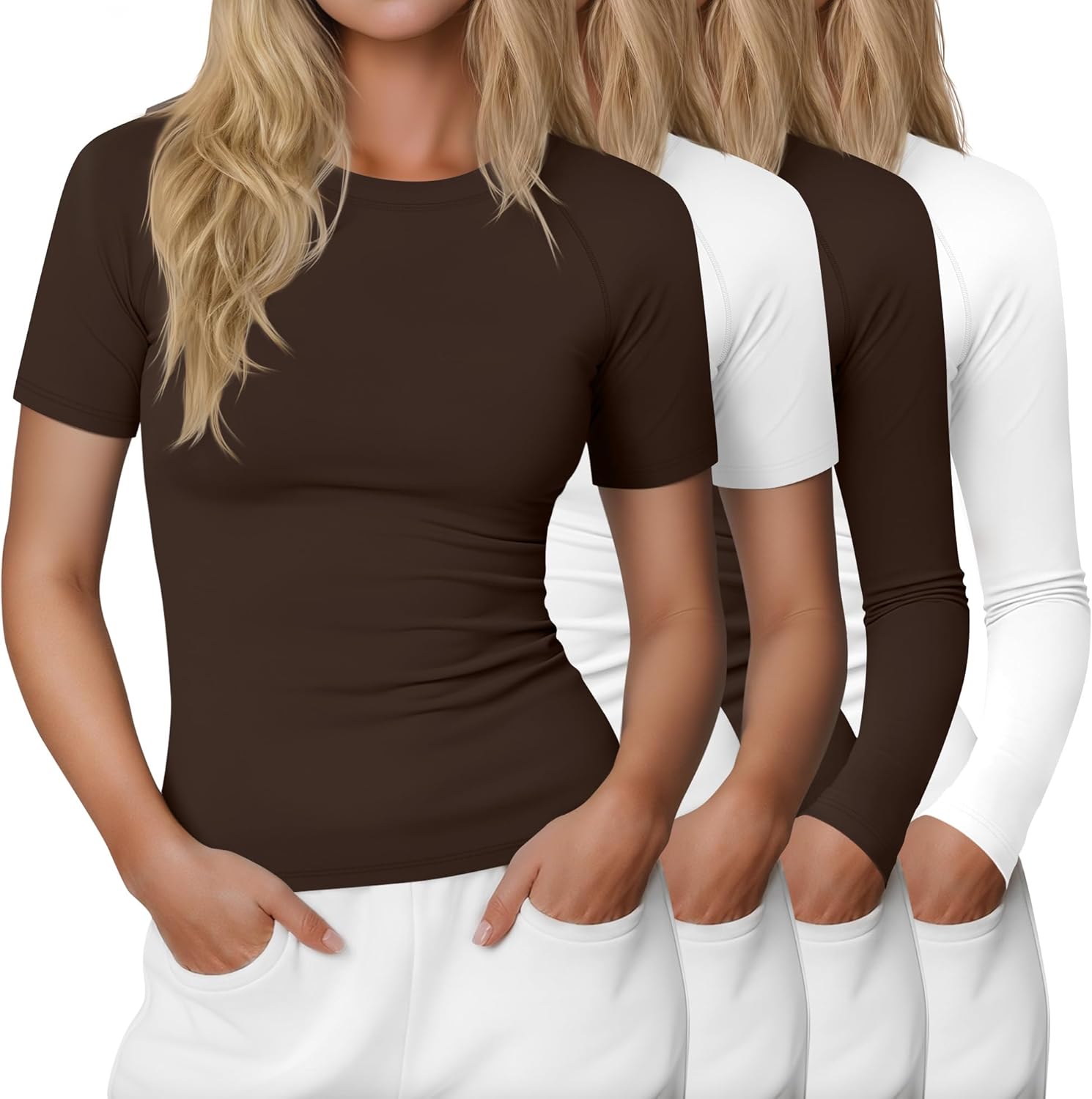 Features: Easy to care for, you can throw gym shirts for women in the washing machine or handwash them in cold water, hang them to dry naturally. Please refer to the detailed dimensions in the size chart to choose the one that suits you. Specifications: Material: 80% Polyester, 20% Spandex Package includes: 4 x Women's compression shirts Notes: Manual measurement, please allow slight errors on size. The color may exist a slight difference due to different screen displays