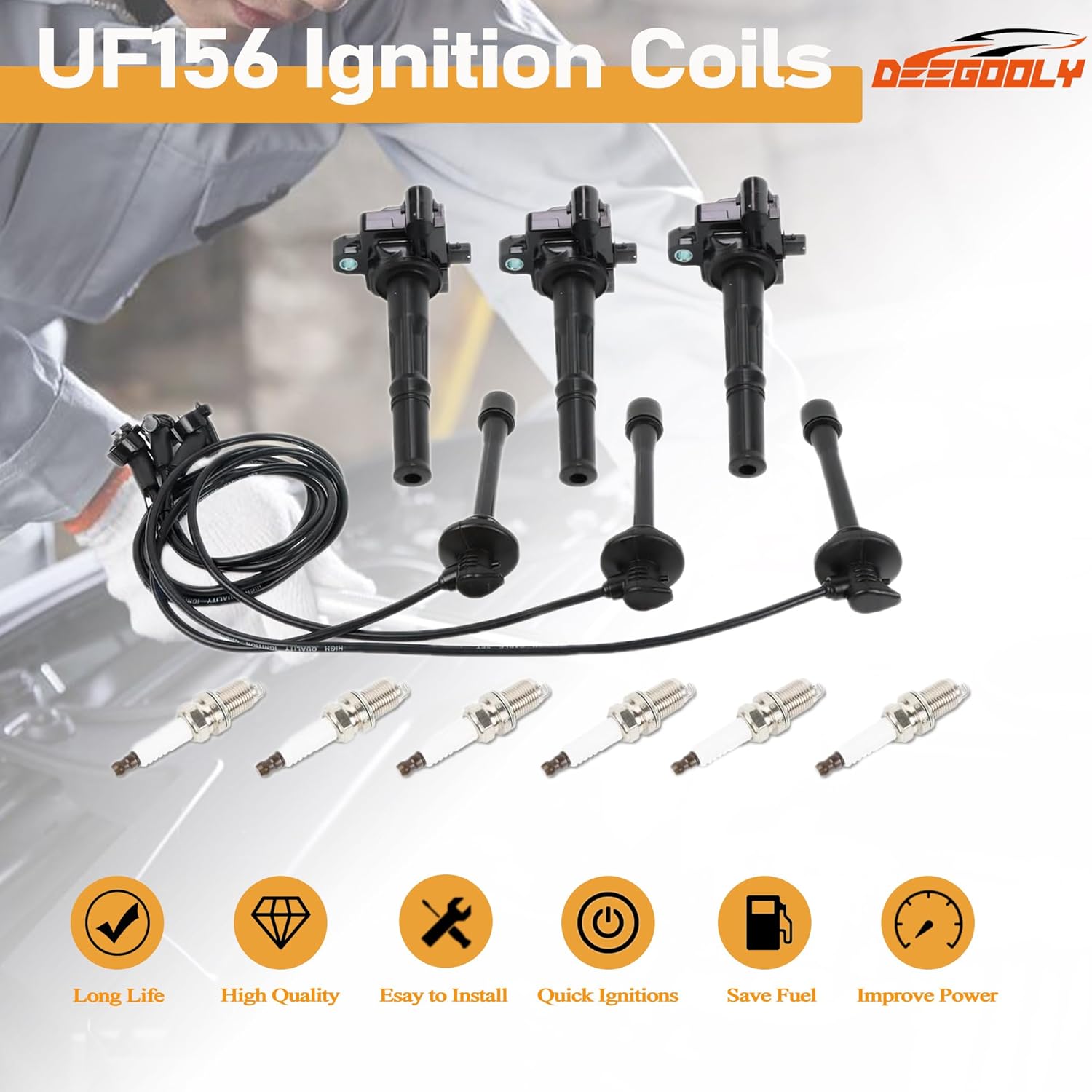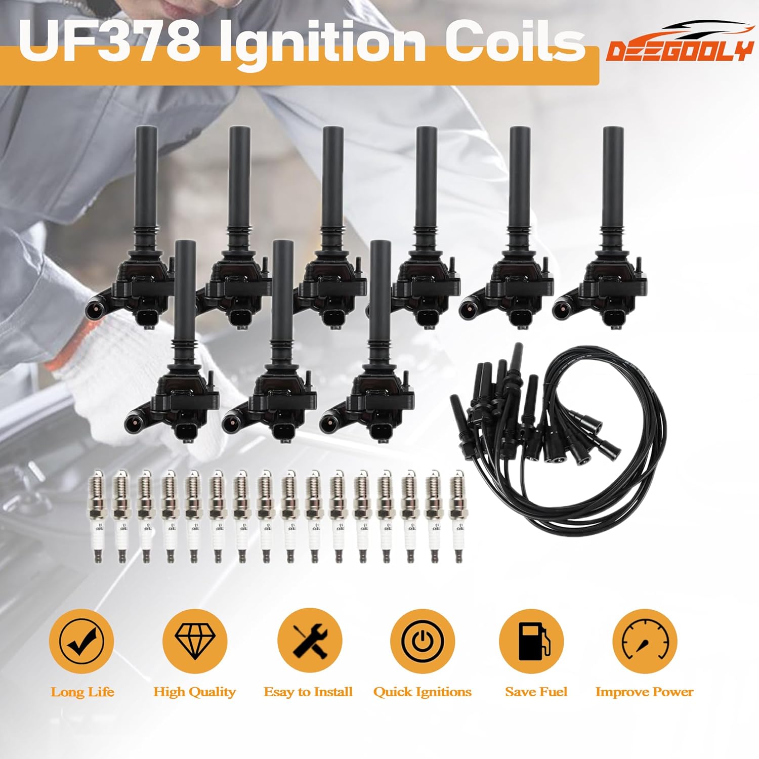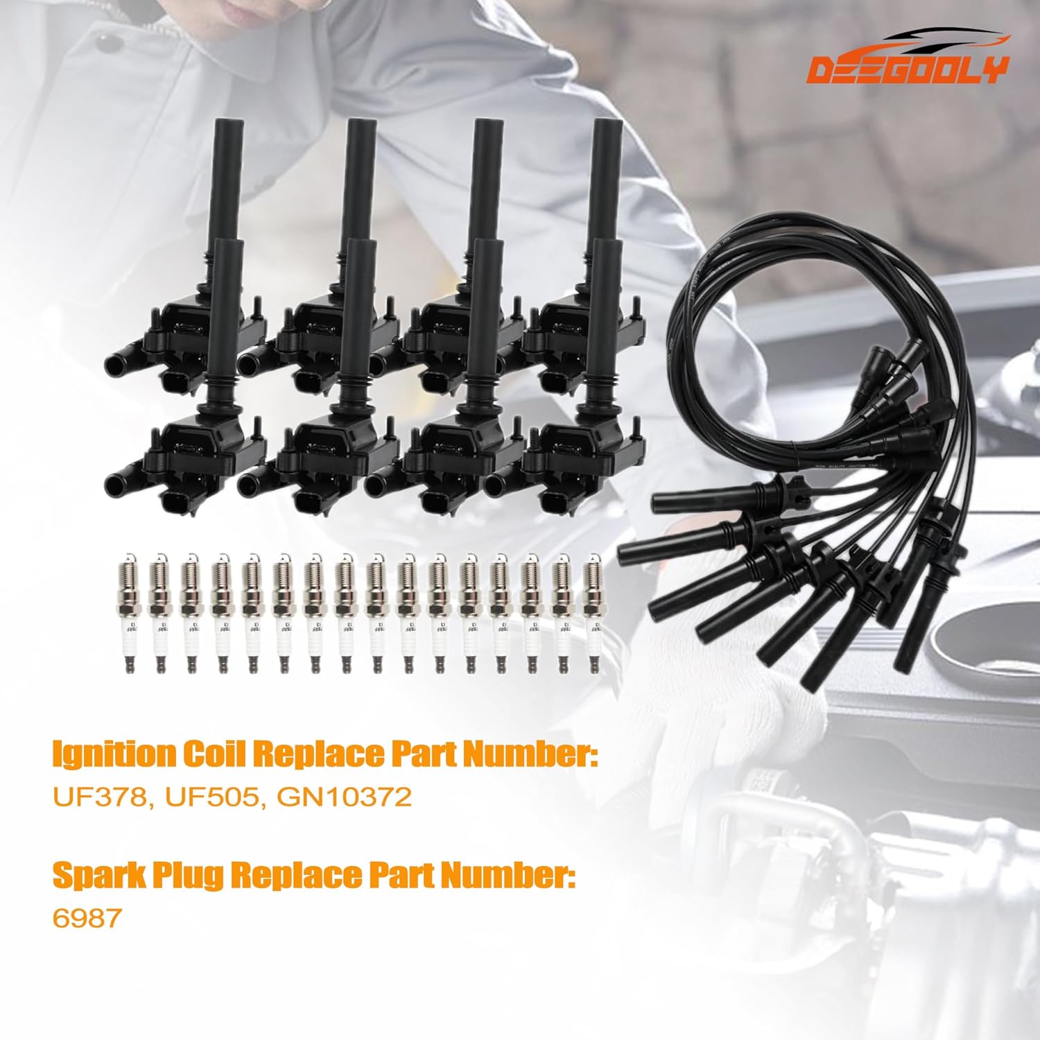 | Model | UF414 Ignition Coils Pack & Iridium Spark Plugs & Spark Plug Wires 8mm Set |