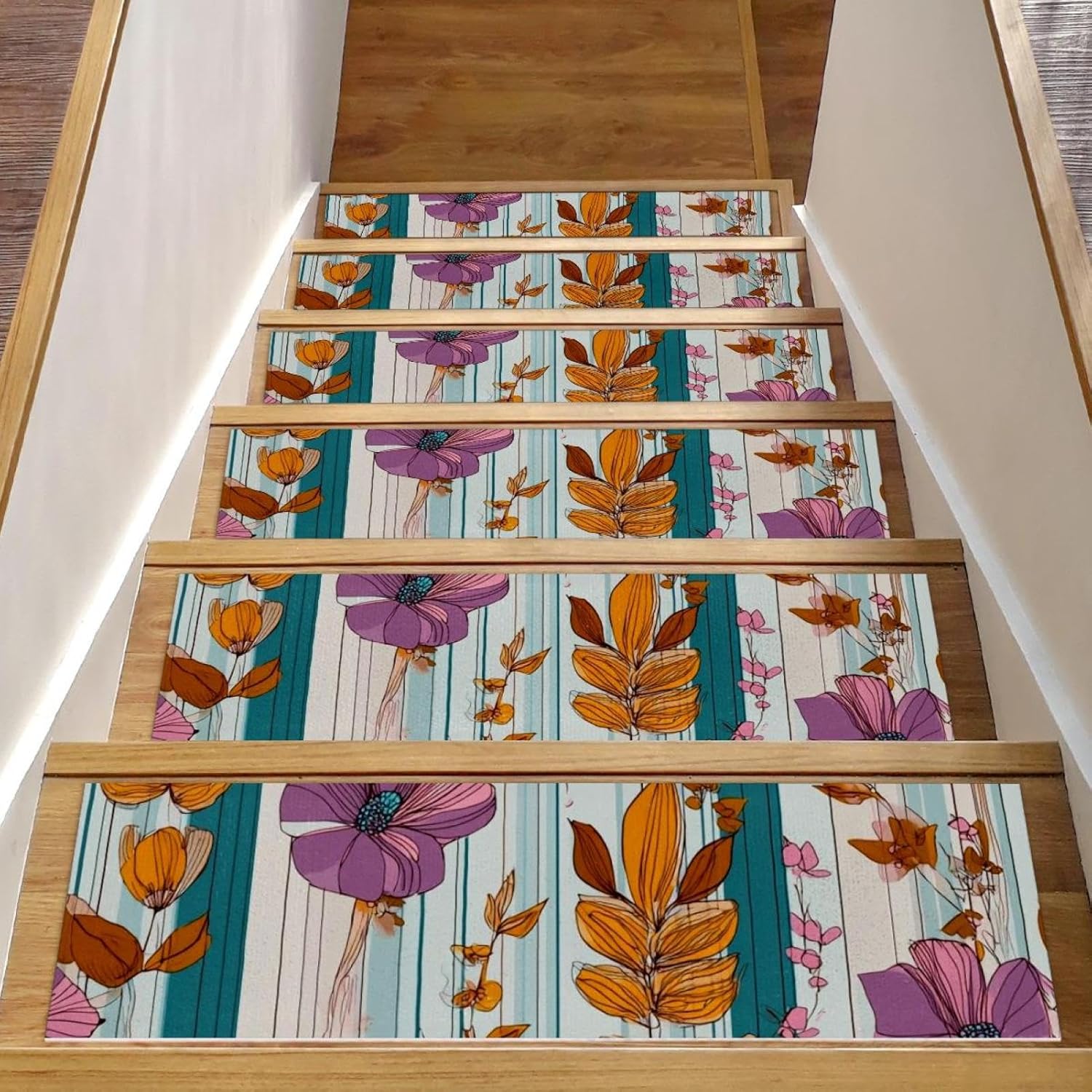 ・Size: 30 x 8 in / 76 x 20 cm, 5 mm thickness. ・Material: The polyester surface absorbs water, preventing stains on the floor. The TPE back is non-slip and water-resistant, preventing damage to the stairs. ・Package Contains: 15 pieces of 30x8in (about 76x20cm) stair mats, 5mm thick. Suitable for most needs. Each stairway treads rugs is individually wrapped. ・Easy to Clean: Vacuum, hand wash or machine wash. The stair runners for wooden steps can be machine washed, preferably hand washed, or vacuumed. Do not use bleach or tumble dry at high temperatures, drying at appropriate low temperatures will give you a comfortable texture. ・Noise Reduction of Stair Treads: By adding our stair runner, not only can you protect your floors, but you can also significantly diminish the noise caused by walking up and down the stairs. Stair rugs can decorate your stairs, create a warm home atmosphere, you can enjoy a peaceful and quiet home environment without disturbances. ・Easy to Remove Adhesive Backing: When you want to replace the stair treads non slip, the adhesive backing easily removes without leaving residue on the steps. ・Holiday Design: Stair carpet treads are designed specifically for Christmas,Halloween, Thanksgiving Day features classic festival elements and vivid printing styles,creating beautiful and stunning visual effects for you. This holiday themed stair treads can easily help you add a strong festive atmosphere, bringing charming and exquisite holiday decorations.