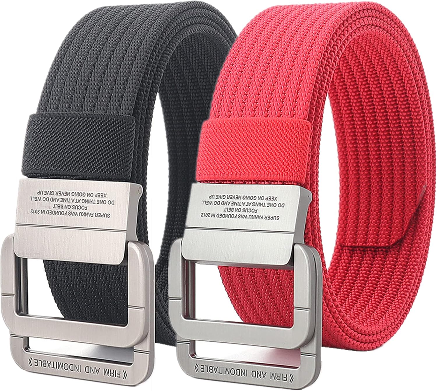 Lightweight mens womens belt Material: Nylon Webbing Strap + Alloy Double Ring Buckle Strap width: 1.5"(3.8cm) Belts length:110CM(43"), 120CM(47"), 130CM(51"), 140CM(55"), 150CM(59"), 160CM(63"), 170CM(67") Packages include: 2 x nylon canvas belts NOTE: 1.Please allow a little error on the size due to manual measurement. 2.The color might exist slight difference due to different displays.