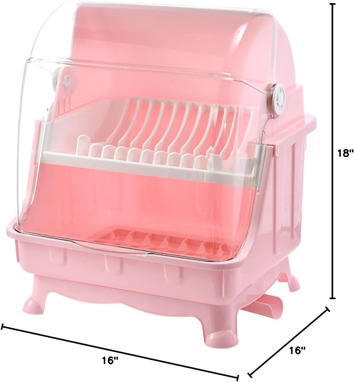 Feature : URABLE AND HEALTHY? Made of high quality , eco friendly plastic , our dish rack is non harm , innocuous , and built to last . Say goodbye to warping and rusting with our longer lasting design . OUBLE LAYER DESIGN? Our extra large 2 tier dish drying rack provides 53% more storage space than regular dish racks , making your kitchen more organized and cleanse . The cover keeps your dishes cleanse and for f ree from dusty . RACTICAL AND SAFE? All components are water washable , and the glossy ed ge and appearance of our cutlery dish drainer won't hurt your hands or damage your kitchenware . With large capacity and efficient space saving design , our dish rack reduces clutter on your kitchen countertops . FFICIENT DRAINING? Our double layer drainage design with drainage holes prevents pools and overflows . The outlet position can be adjusted to keep water flowing directly into the sink , effectively preventing water accumulation . IDE APPLICABILITY? Our multifunctional kitchen storage box can be used to store bowls , dishes , chopsticks , bottles , or condiment jars , making it a versatile addition to your kitchen . The clear cover protects your washed dishes from fly , mosquitoes , cockroaches , and more , making it a safe way to organize and store infants bottles , kids' dishes , and utensils . Specification : Item Type : Dish Drying BoxMaterial : PP , PS , Wheat StrawWeight : Approx . 500g / 17 . 6ozPackage List : 1 x Dish Drying Box