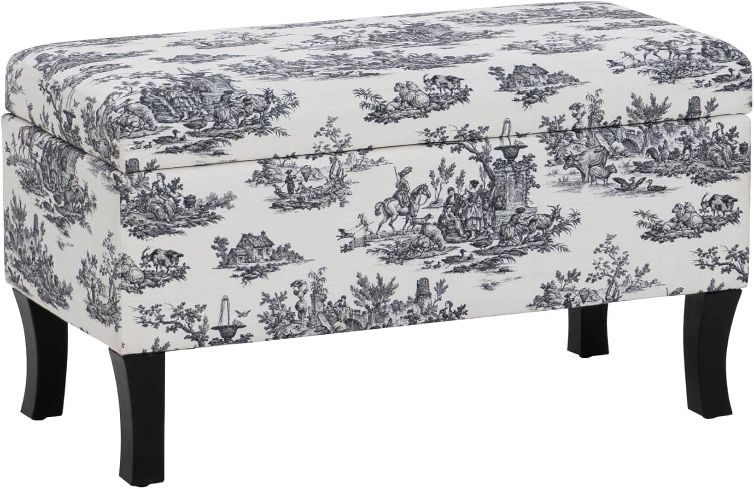 Keep clutter at bay with this versatile storage ottoman featuring durable fabric printed with a large-scale shell pattern in soft hues. The cushioned, upholstered top also provides additional comfortable seating. Place at the foot of a bed, in any entryway, or use as an ottoman for an airy, coastal touch and convenient yet stylish functionality.