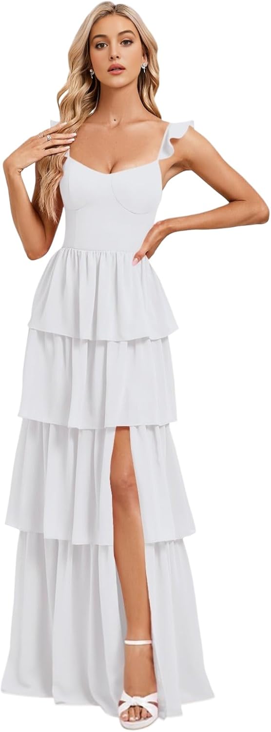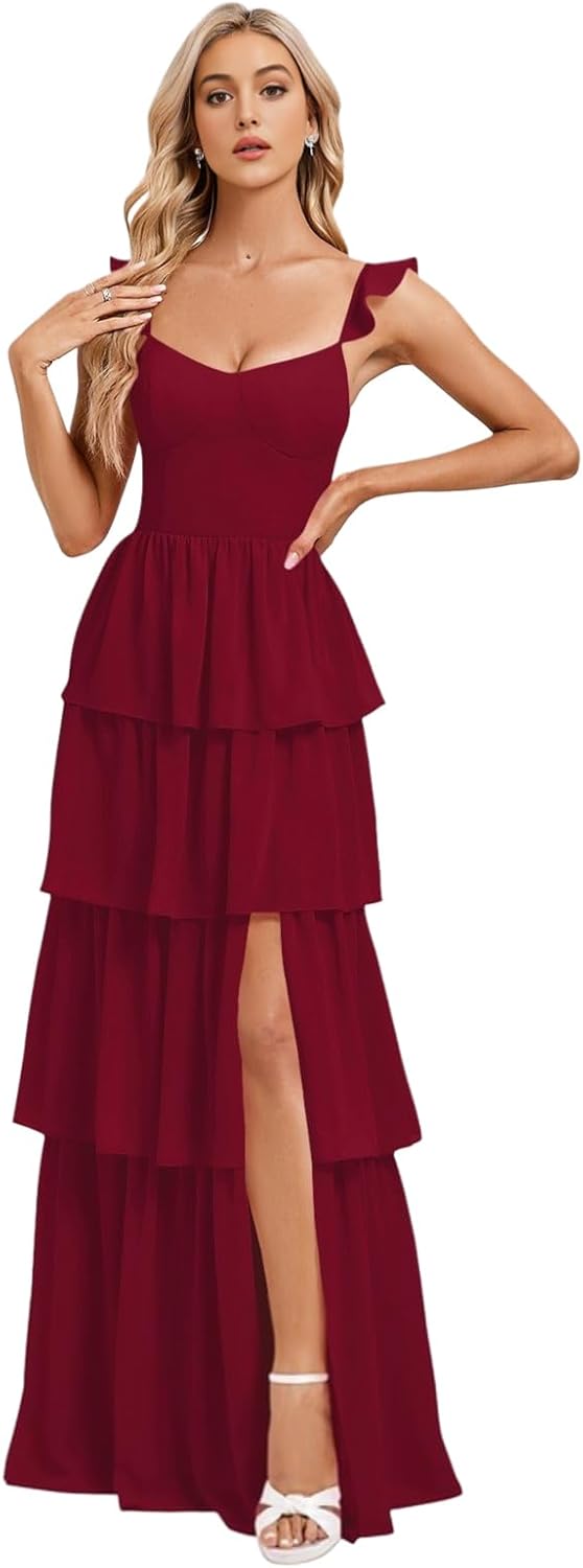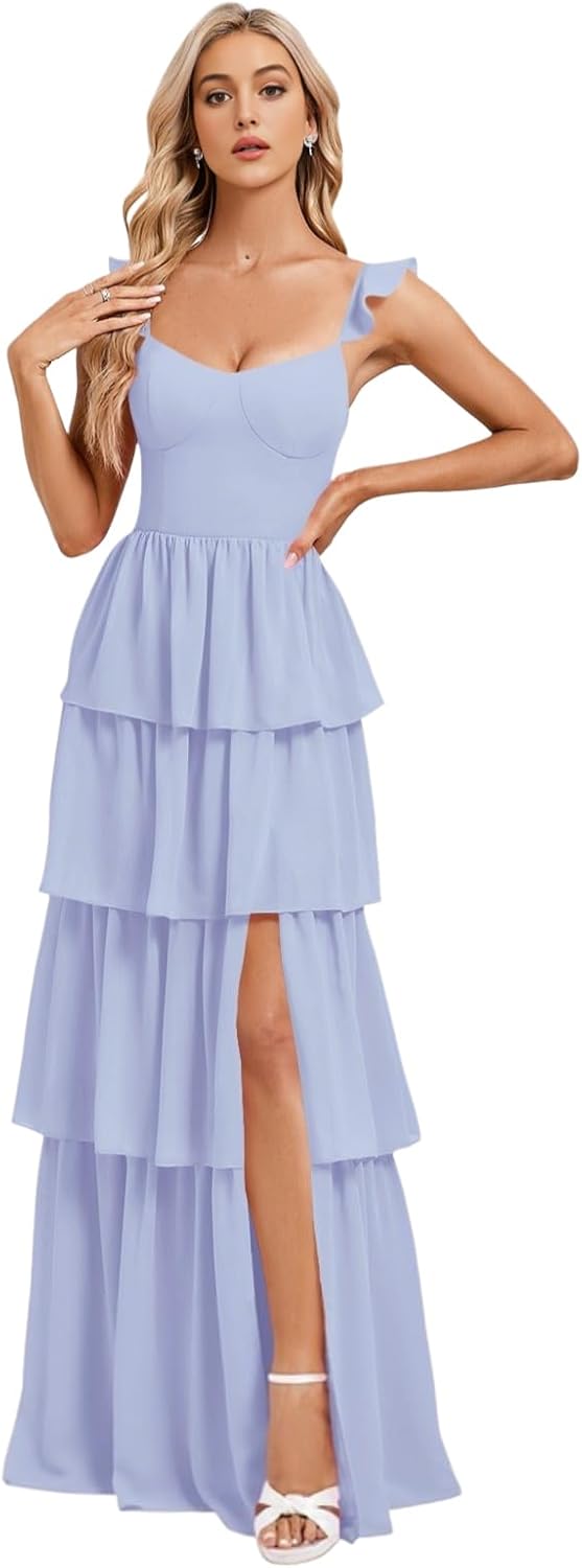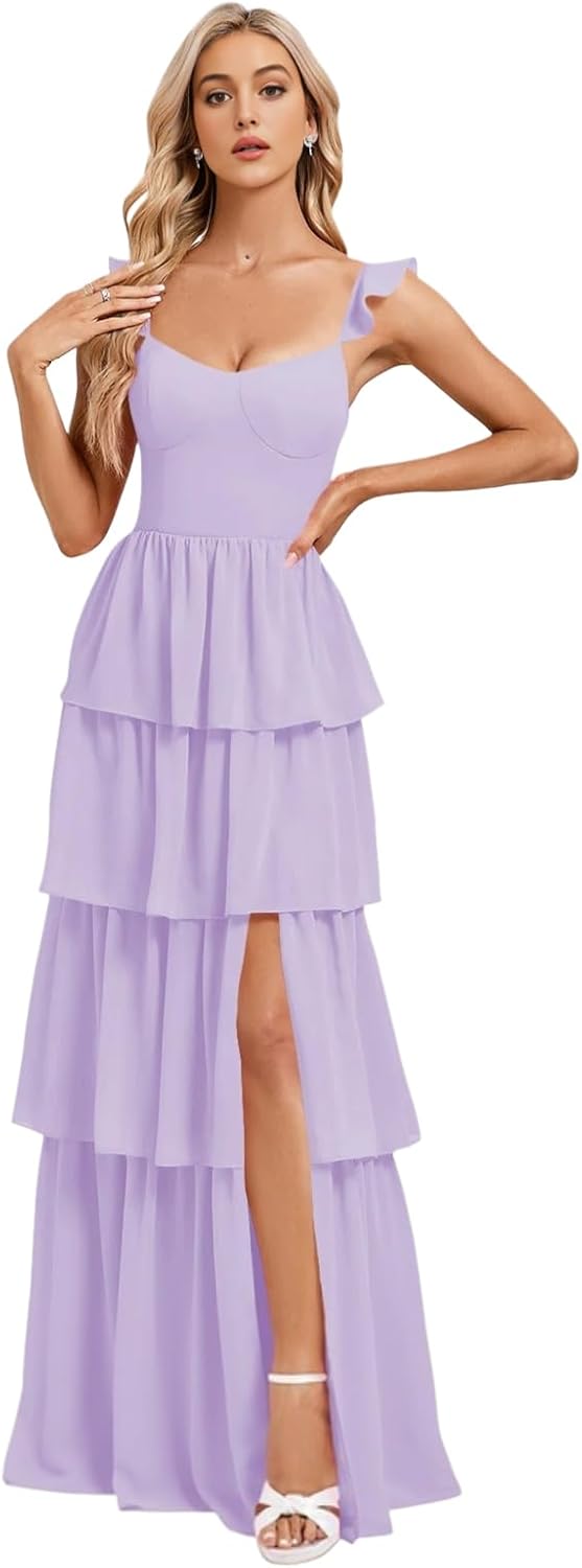 Tiered Ruffle Bridesmaid Dresses for Women 2025 A Line V Neck Ruched Chiffon Long Formal Wedding Guest Dress with Slit Standard Size US2 Bust: 32.5"---Waist: 25.5"---Hips: 35.75" US4 Bust: 33.5"---Waist: 26.5"---Hips: 36.75" US6 Bust: 34.5"---Waist: 27.5"---Hips: 37.5" US8 Bust: 35.5"---Waist: 28.5"---Hips: 38.75" US10 Bust: 36.5"--Waist: 29.5"---Hips: 39.75" US12 Bust: 38"----Waist: 31"-----Hips: 41.25" US14 Bust: 39.5"--Waist: 32.5"---Hips: 42.75" US16 Bust: 41"--Waist: 34"---Hips: 44.25" US16W Bust: 43"---Waist: 36.25"------Hips: 45.5" US18W Bust: 45"---Waist: 38.5"---Hips: 47.5" US20W Bust: 47"---Waist: 40.75"----Hips: 49.5" US22W Bust: 49"---Waist: 43"----Hips: 51.5" US24W Bust: 51"---Waist: 45.25"----Hips: 53.5" US26W Bust: 53"---Waist: 47.5"----Hips: 55.5" Customized Women's V Neck Chiffon Bridesmaid Dress With Slit Long You Needed:A.Full Bust _____ inch or ___ cm.B.Waist _____ inch or ___ cm. C.Hips _____ inch or ___ cm.D.Height: _____inch or ___ cm.E.Hollow (collarbone) to floor____ inch or ___ cm.F.Shoulder to Shoulder ____ inch or ___ cm.G.The heel of your shoes: _____inch or ___ cm.H.The date you need the dress____.OTHER NOTES:1 .The real color of the item may be slightly different from the pictures shown on website caused by many factors such as brightness of your monitor and light brightness. 2.Please allow slight deviation for the measurement data. You are very welcome to costume dress for any question, we will always be here with you.