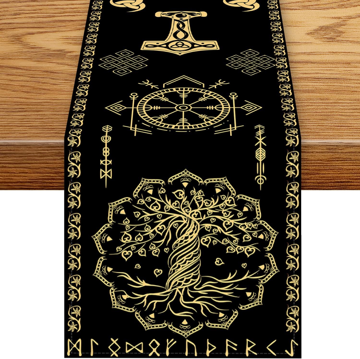 "Packaging Size":13*36in=33*92cm 13*72in=33*182cm 13*90in=33*228cm 13*108in=33*274cm tips: 【High Quality】Our table runner is made of made of 100% spun polyester, soft and sturdy, and does not fade or have any odor. Provide long-lasting and elegant decoration for your dining table. 【Size Selection】The smallest table runner measures 13x36 Inch, appropriate for a table that can seat 1-2 people.This table runner comes in four sizes, suitable for rectangular, circular, or square tables. You can determine the desired size based on the size of the table and the number of guests. 【Unique Design】Our table runner adopts an abstract retro design, adding a touch of elegance to your table. The unique design and vibrant colors are sure to leave a deep impression on your family and guests. 【Occasions】This table runner is not only suitable for dining tables, but also for coffee tables, TV stands, and dressing tables, making it an excellent choice for your home decor. It is also suitable for any place, such as farmhouse, Woodland, country, party, and it is also a perfect gift. 【Easy Care】This table runner is machine washable in cold water, reusable, easy to clean and maintain, and can be air dried or low-temperature dried. Please do not bleach."